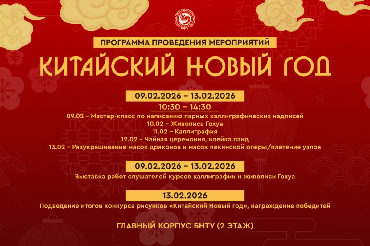 С 9 по 13 февраля 2026 года в Белорусском национальном техническом университете пройдут мероприятия, приуроченные к празднованию китайского Нового года. В преддверии торжества предлагаем узнать об истоках праздника и его традициях.