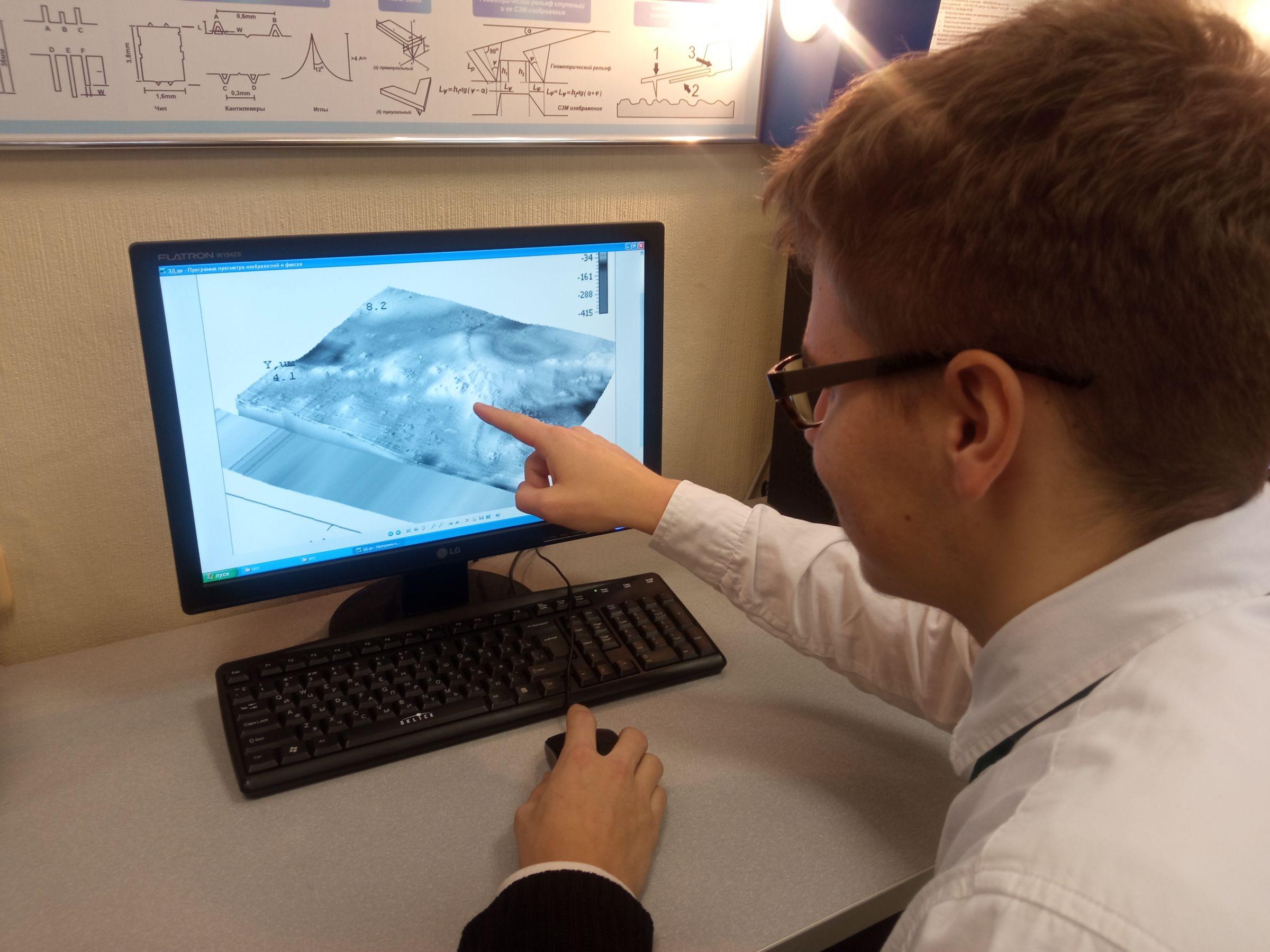 Одна группа отправилась в лабораторию нанодиагностики кафедры «Микро- и нанотехника». Там ребята узнали принципы работы сложного исследовательского оборудования и получила первый опыт в анализе результатов исследований методами электронографии и атомно-силовой микроскопии.