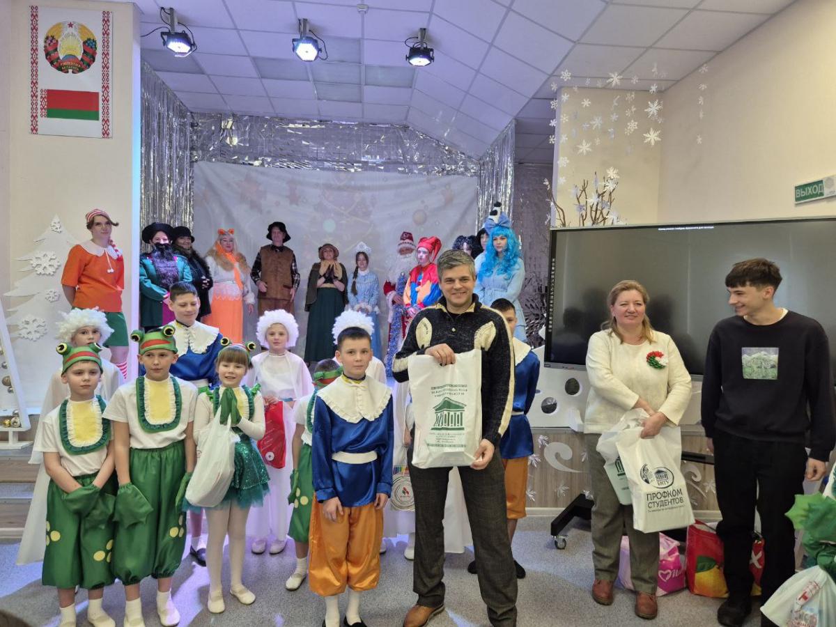 В рамках акции «Наши дети» воспитанникам школы-интерната были вручены подарки от общественного объединения «Белая Русь», Белорусского Красного Креста, профкома студентов, а также от преподавателей и студентов БНТУ, что стало ярким проявлением заботы, внимания и социальной ответственности. В ответ на искреннее участие и доброту учащиеся и педагоги школы-интерната подготовили для гостей творческий подарок – спектакль «Золотой ключик», который был встречен зрителями с большим интересом и теплотой.