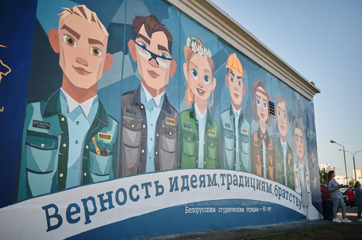 Состоялось открытие мурала «Верность идеям, традициям, братству». Поводом для этого послужили сразу два юбилея: 60-летие студотрядовского движения и 105-летие ВЛКСМ. Благодаря студентам архитектурного факультета в Минске появился первый мурал, возведенный бойцами студенческих отрядов.