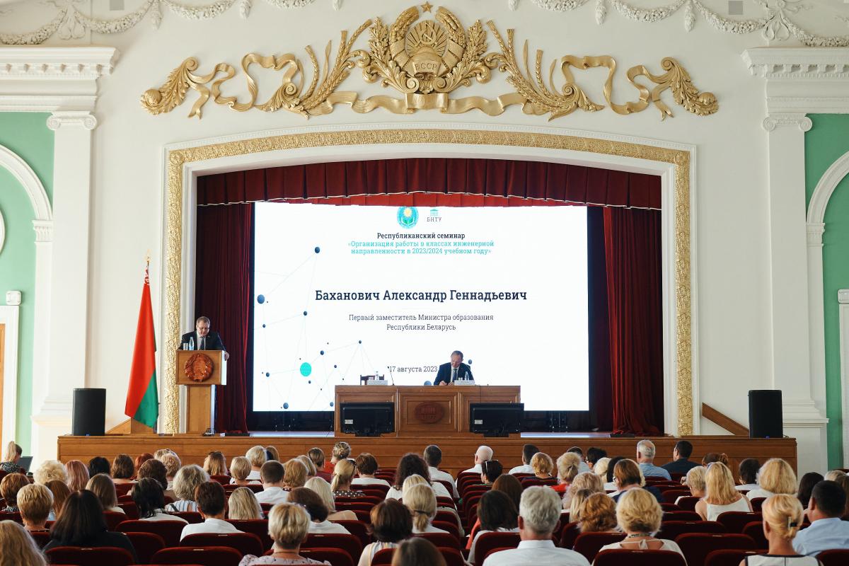 В августе прошел и значимый в области образования Республиканский семинар «Организация работы в классах инженерной направленности в 2023/24 учебном году». Основная тема мероприятия заключалась в обсуждении дорожной карты по развитию сети профильных классов инженерной направленности с представителями учреждений общего среднего образования. Согласно этой карте БНТУ активно сотрудничает с учреждениями среднего образования Беларуси для обеспечения инженерных классов материально-технической и образовательной базой.