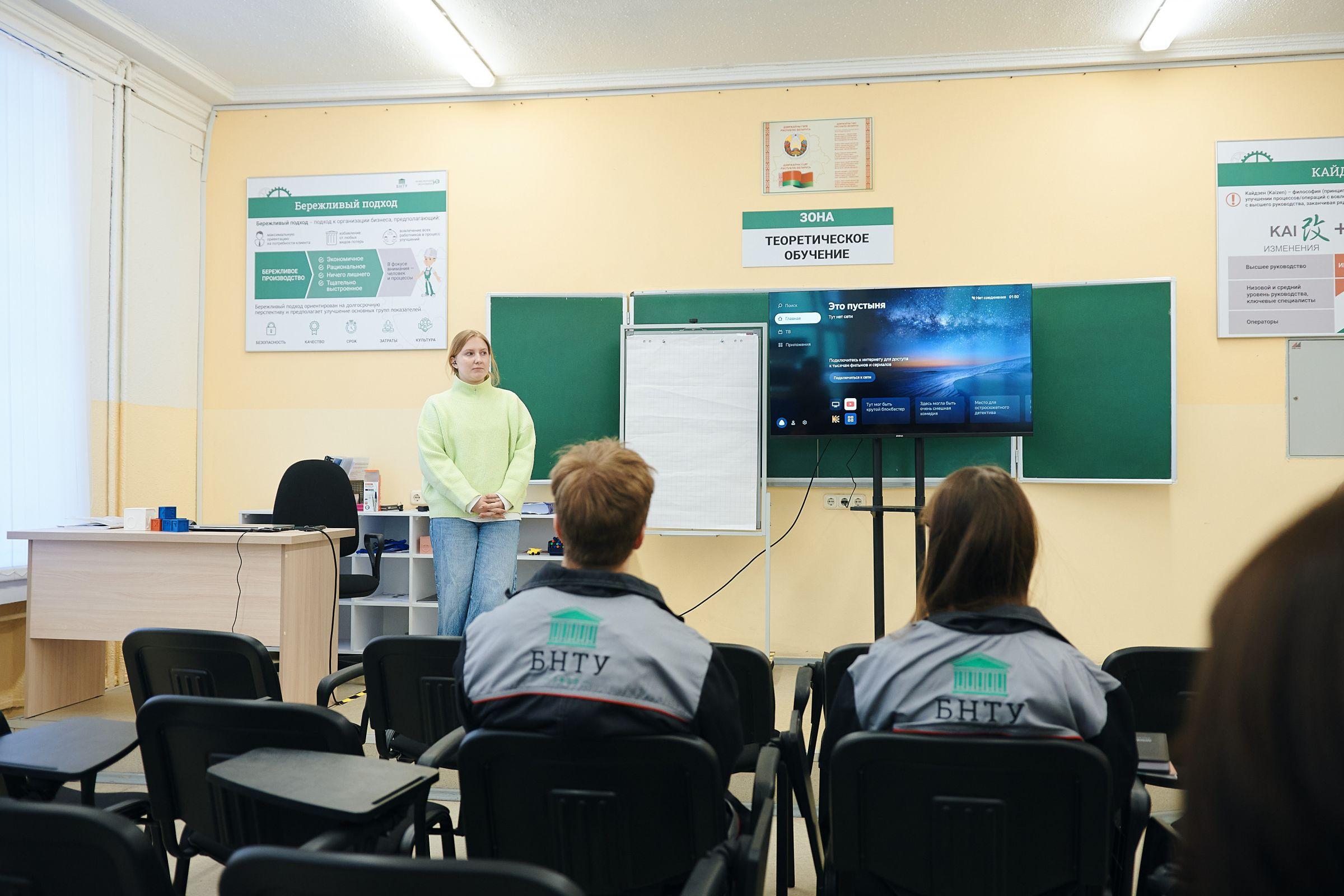 На машиностроительном факультете преподаватель Кристина Шкаровская вместе со студенткой четвертого курса Марией Горенковой познакомили школьников со специальностью «инженерная экономика». Они рассказали о возможностях профессии, насыщенной студенческой жизни и участии в научной деятельности. Мария поделилась личным опытом разработки проекта, подчеркнув, что обучение в БНТУ открывает путь не только к знаниям, но и к практическим достижениям, которые формируют уверенность в будущем.