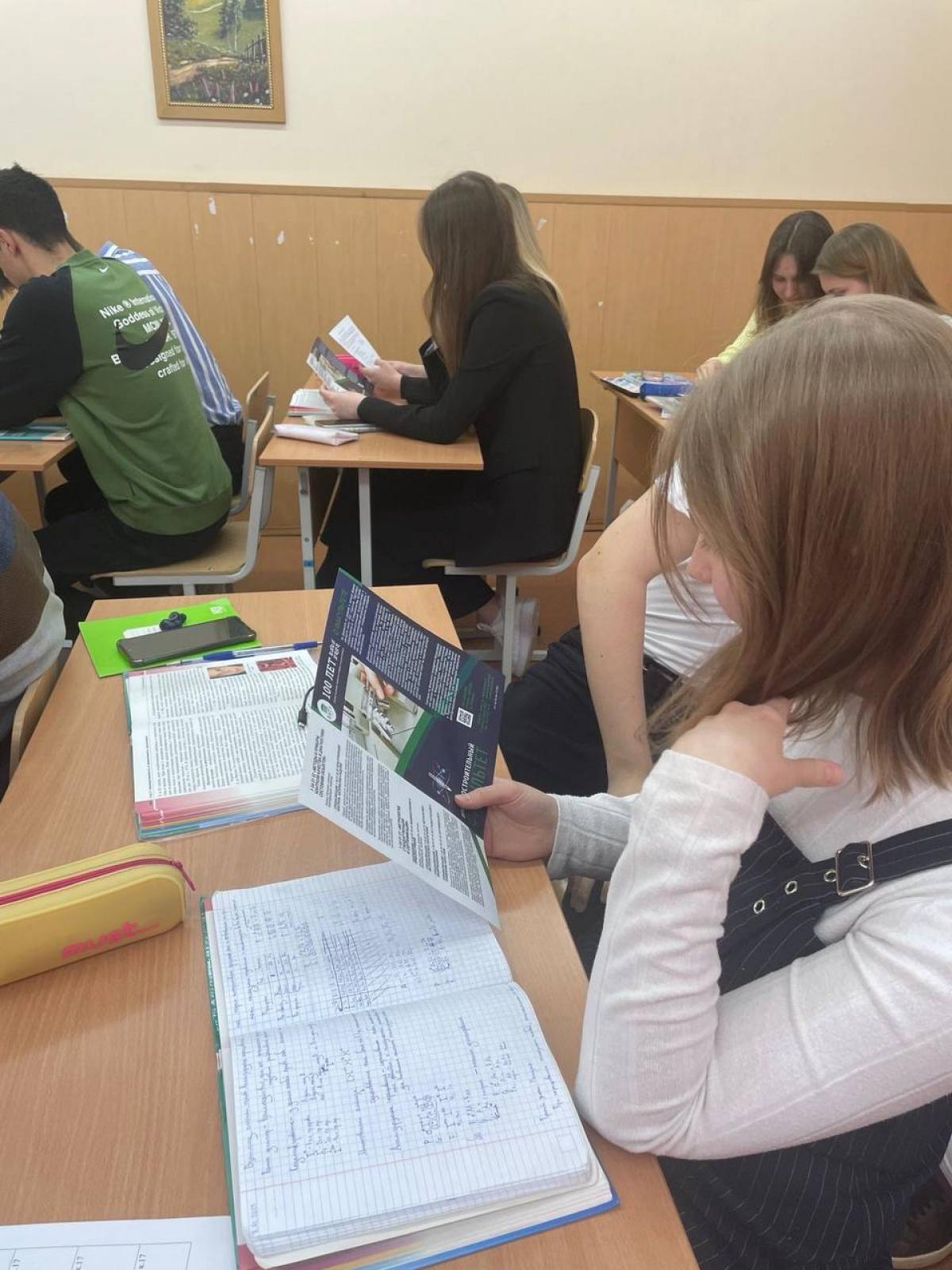 Школьники узнали не только о проходных баллах, но и о насыщенной студенческой жизни в БНТУ. Каждый желающий мог после выступления изучить информационные материалы. Представленные буклеты наглядно демонстрировали направления подготовки и научные достижения факультета.