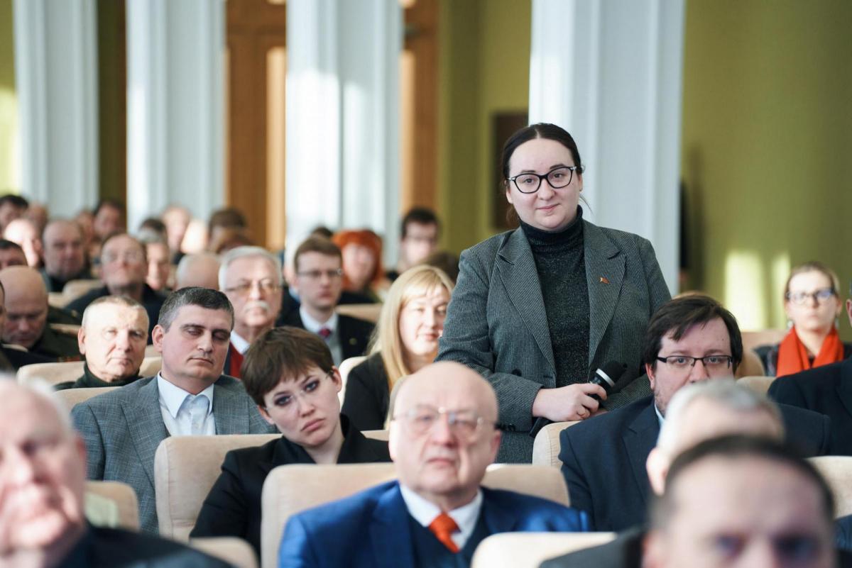 Вторая половина мероприятия прошла в формате активного диалога: работники БНТУ задали ряд вопросов государственному деятелю. Присутствующие интересовались регулированием процесса финансирования НИОКР и созданием промышленных образцов.